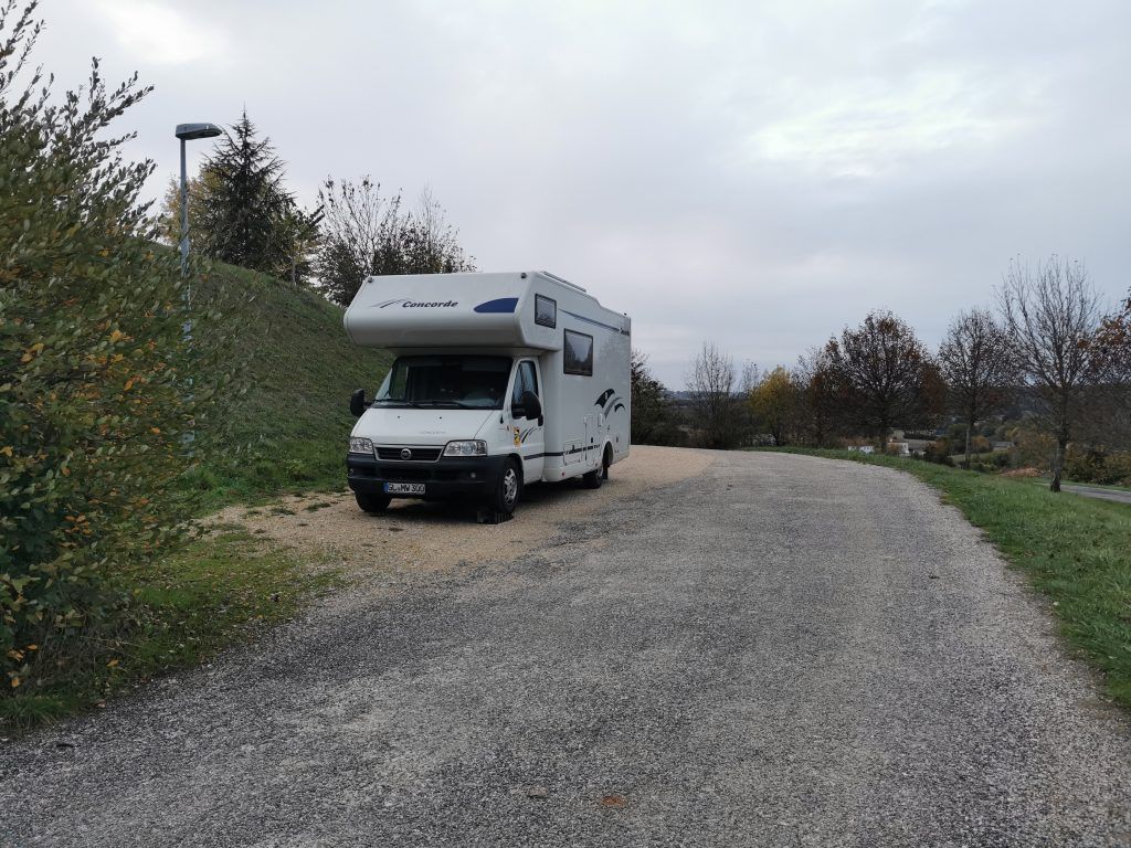 Was wir noch nicht wussten, was passieren kann, wenn man rückwärts über den höchsten Punkt der Keile fährt: Die Keile kippen senkrecht, verklemmen im Radkasten und lassen sich nicht mehr herausnehmen. Folge: Wir müssen sie ausgraben!! Kein lockerer Boden, nein – verdichteter Splitt. Eine Stunde Grabearbeiten mit Schraubenzieher und Schraubschlüssel als Werkzeug.