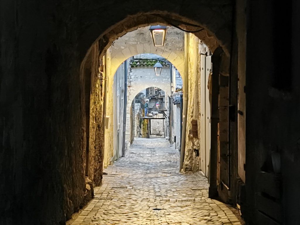 Es ist spät geworden. Bevor es ganz dunkel wird, machen wir einen kurzen Abendspaziergang durch Monflanquin.