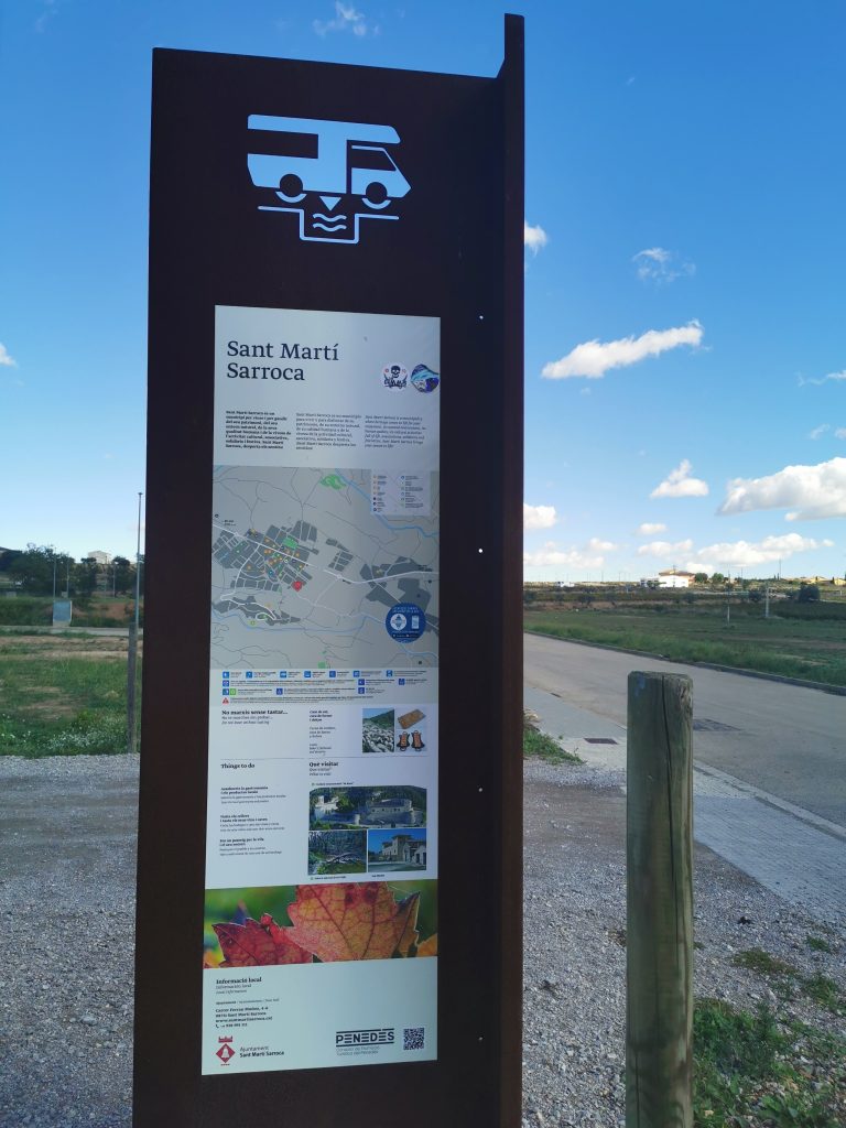 Bei der Hunderunde meine ersten spanischen Worte „Hola!“ und „Buenos días“ heute Morgen nach langer Zeit. Weiter! Wir fahren überwiegend Autobahn und sind schnell am nächsten Ort Sant Martí Sarroca. Ein sonniger, geschotterter offizieller Stellplatz, unterhalb eines Schlosses mit gleichem Namen, erwartet uns.