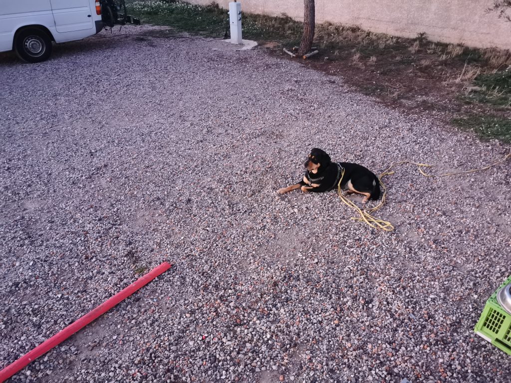 Zum letzten Mal die morgendliche Hunderunde, begleitet von einer tollen Morgenröte. Nach einem guten Frühstück geht es los. Es ist nichts los auf den Straßen, so kommen wir gut voran. Für die Nacht finden wir einen städtischen Wohnmobilstellplatz in Maçanet de la Selva. Bis zur französischen Grenze sind es jetzt nur noch 86 km.