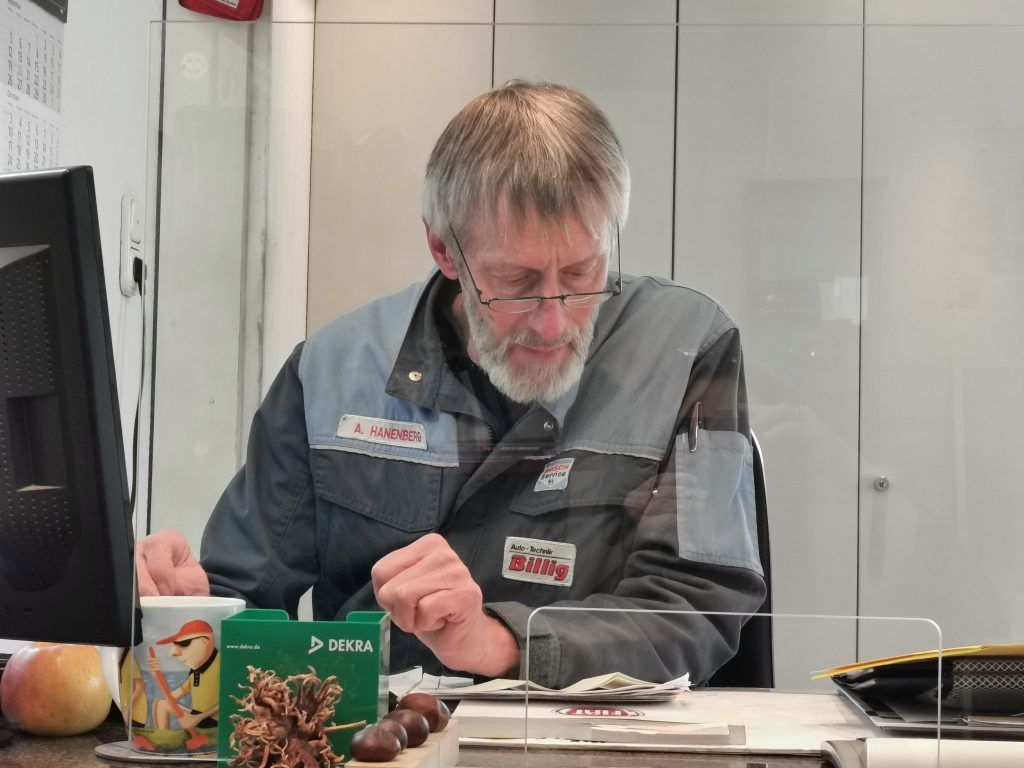 Von Mittwoch auf Donnerstag übernachten wir in Leverkusen, 15 Autominuten von der Fachwerkstatt Billig in Köln Stammheim entfernt. Wie vereinbart sind wir um 10:30 Uhr vor Ort. Herr Hanenberg prüft unsere Unterlagen und begutachtet vorab die Gasanlage.