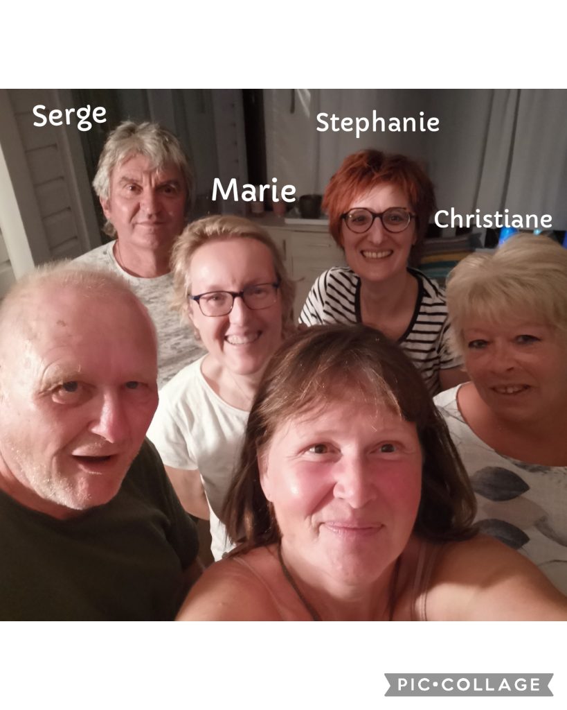 Uns gegenüber wohnend mit Hund Falco. Sehr hilfsbereit und freundlich. Haben uns sofort ihren Wagen angeboten, als wir mal wieder zum Tierarzt mussten. Besonders der eher wortkarge Dani hat uns immer wieder mit seiner stillen Art angesprochen. Zuerst dachten wir, er hätte eine Sprachbehinderung, da er schlecht zu verstehen war, bis wir herausgefunden haben, dass er aus dem Département Nord der Region der Ch’tis kommt. Franzosen sind gesellige Menschen, Dani und Virginie sind sehr französisch, und halten den Platzrekord mit bis zu 15 Dauerbesuchern über mehr als 2 Wochen am Stück. Wolfgangs Alptraum.
