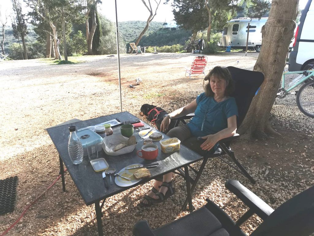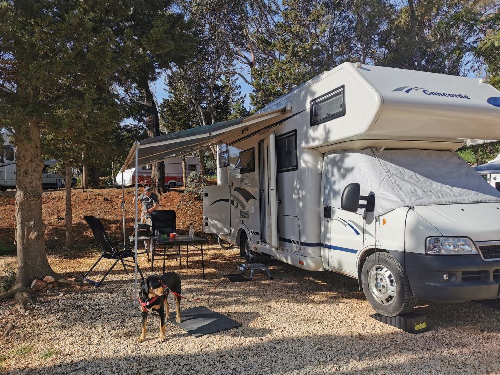 Heute Morgen haben wir dann doch noch den Platz gewechselt. Hier steht unser Wohnmobil nun relativ gerade (wichtig für das Schlafen, aber auch für das Funktionieren des Kühlschranks und Gasherdes) und der Platz ist sonniger, offener.