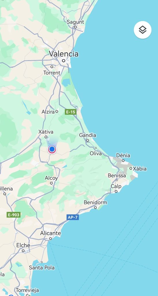 Nach 157 km kommen wir in Benissuera an. Der Platz ist von der Gemeinde als offizieller Wohnmobilstellplatz angelegt worden; Kostenfrei, mit den wichtigsten Serviceleistungen.
