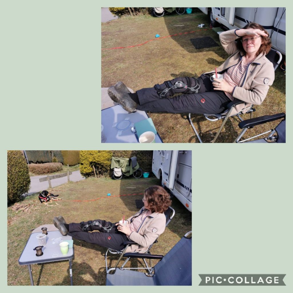 Gestern habe ich eine sogenannte Orthese bekommen (siehe rechtes Bein). Damit ist mein Knie provisorisch stabil. Ich darf das Bein zu 100% belasten. Das ist toll, denn mit dieser Orthese kann ich mich sicher bewegen. So bin ich heute schon 2,5 km mit Wolfgang und Ava spazieren gegangen. Ein wunderbares Gefühl. Nach nunmehr 3 Wochen Schonzeit werde ich meine Muskulatur bis zur OP wieder kräftigen.