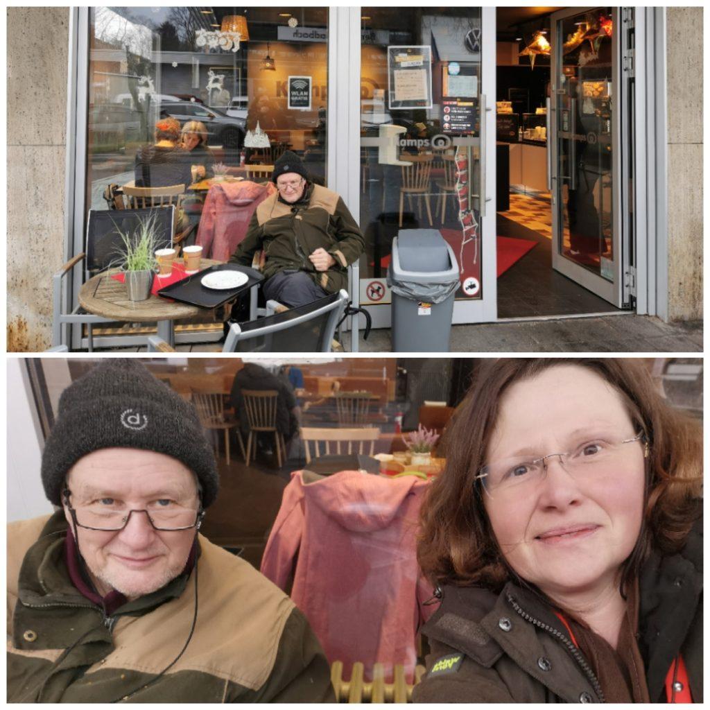 Wir hatten eine gute ruhige Nacht. Während unser Wagen repariert wird, warten wir in einem Café in der Nähe.