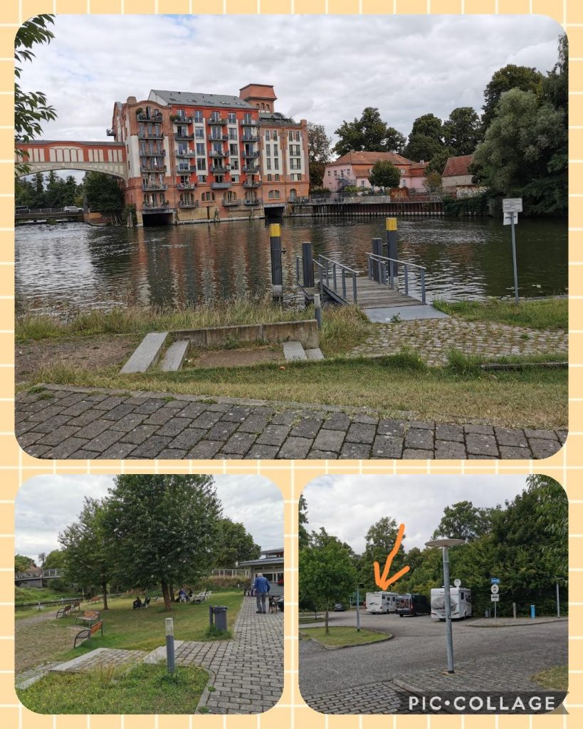 Hier stehen wir erst einmal bis Montag Morgen. Zentral und wunderschön gelegen. Bis zur Reparatur unseres Wohnmobils habe ich ein Zimmer ab Montag in Rathenow gebucht. Wolfgang wird sich einen Mietwagen nehmen, um nach Königswinter zum Seminar zu fahren. Alles weitere bleibt abzuwarten.