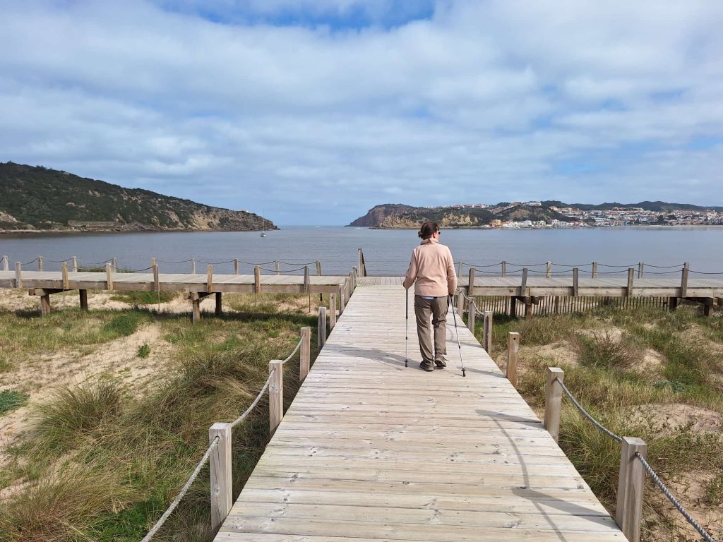 26.03.25: Uns lockt die andere Seite der Lagune, die Stadt São Martinho do Porto in 3 km Entfernung. Auch sind wir neugierig auf einen Felsentunnel, der am Altlanik endet.