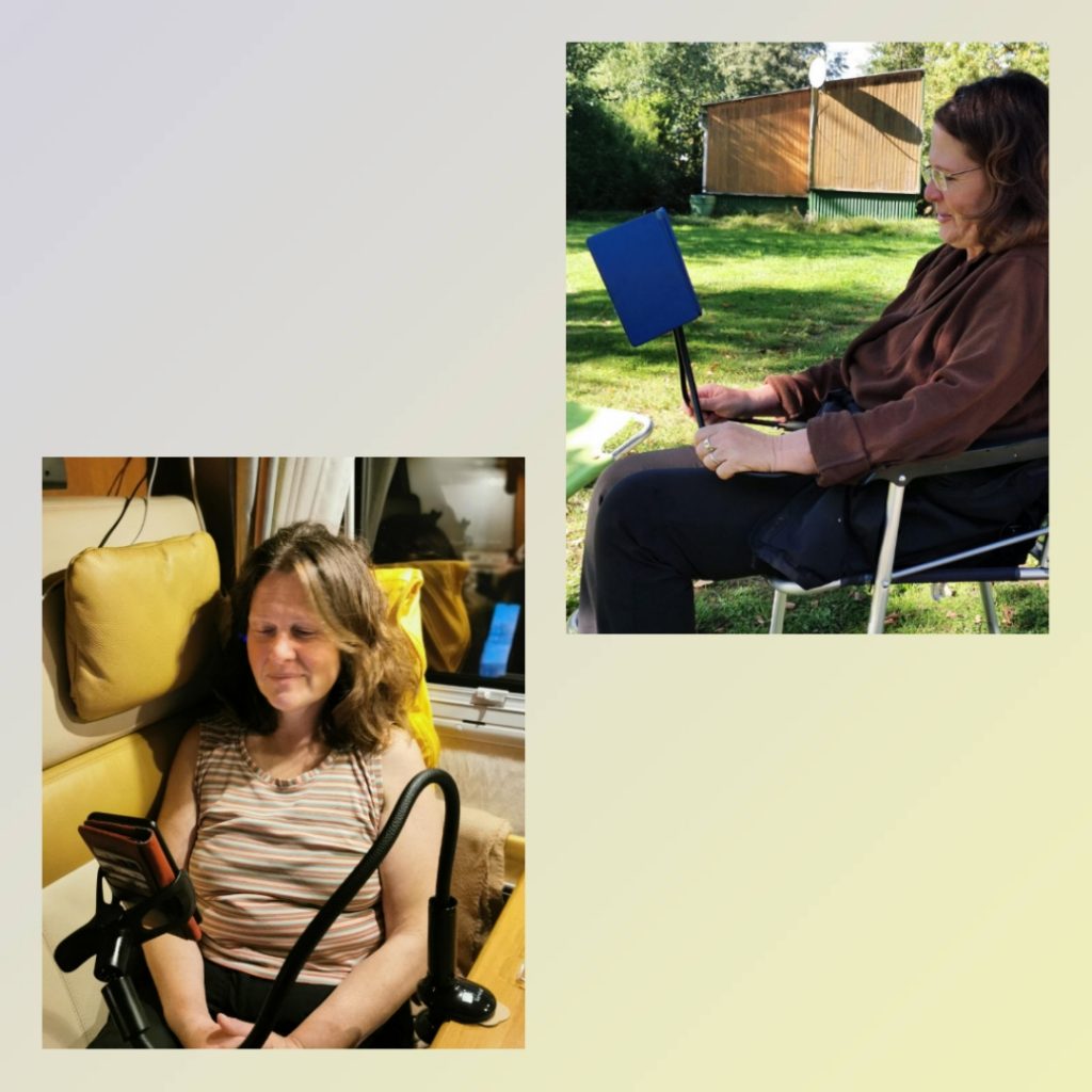 Sooft es geht halten wir uns draussen in der Natur auf. Wir wandern viel oder fahren Fahrrad. Die andere Zeit sitzen wir auch viel, lesen oder gucken Fern etc. Zur Freude meines Nackens und der Schulter habe ich zwei unterschiedliche Handy/E-Book Halterungen für Zuhause endeckt. Sono felice 🙂