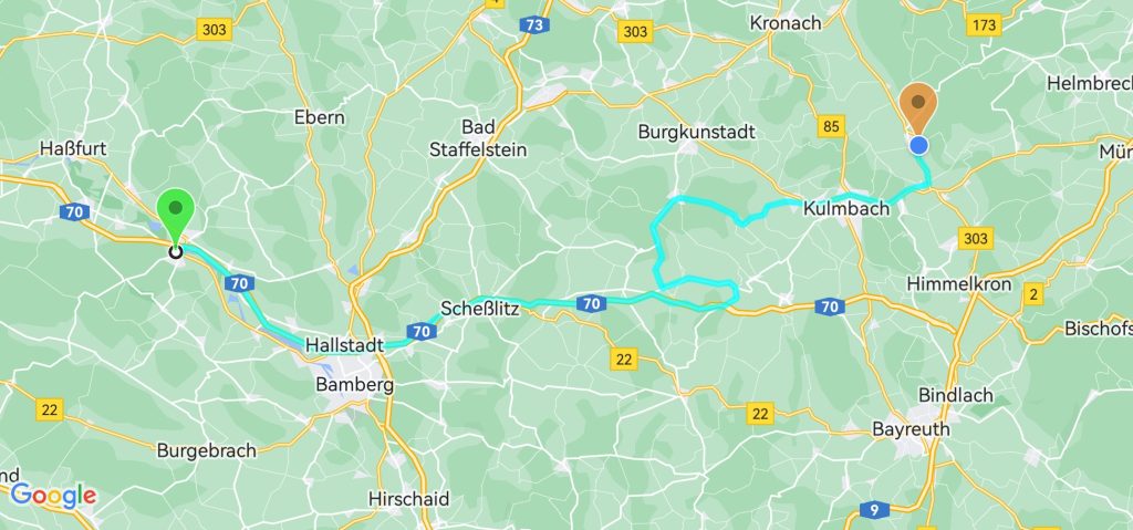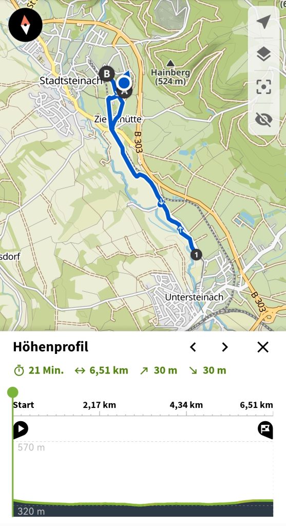 Nach 101 km (16 km Umweg wg. Straßensperrungen) kommen wir im Vormittag in Stadtsteinach an. Stadtsteinach wird auch „das Tor zum Frankenwald“ genannt.