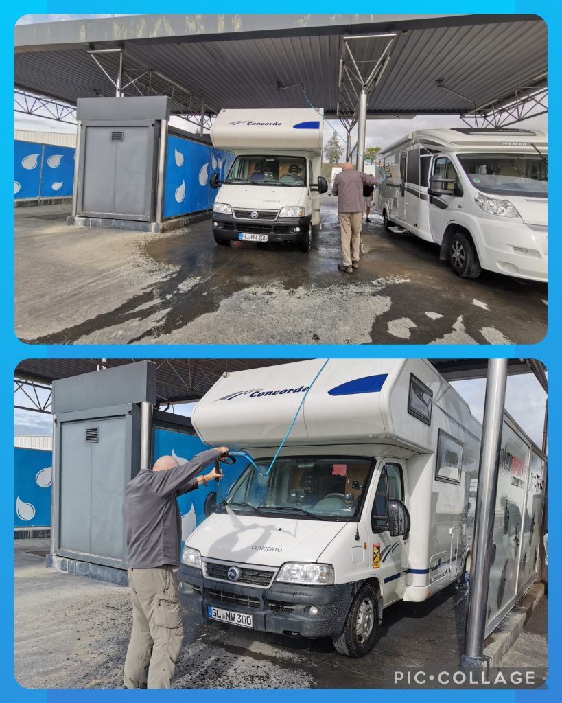 Unser Wohnmobil sieht danach aus wie 100 🐷 im Dreck gesuhlt. Jetzt hilft nur noch ein großer Wasserschlauch.
