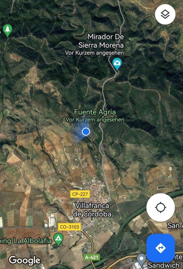 Nach ca. 188 km kommen wir in Villafranca de Córdoba an. Unser Übernachtungsplatz liegt in der Natur im Fuente Agria einem großen Wandergebiet.