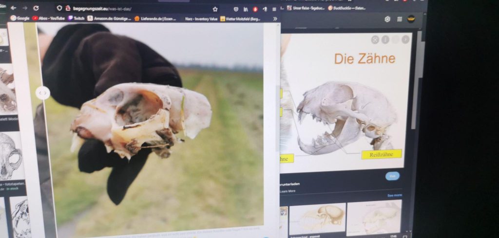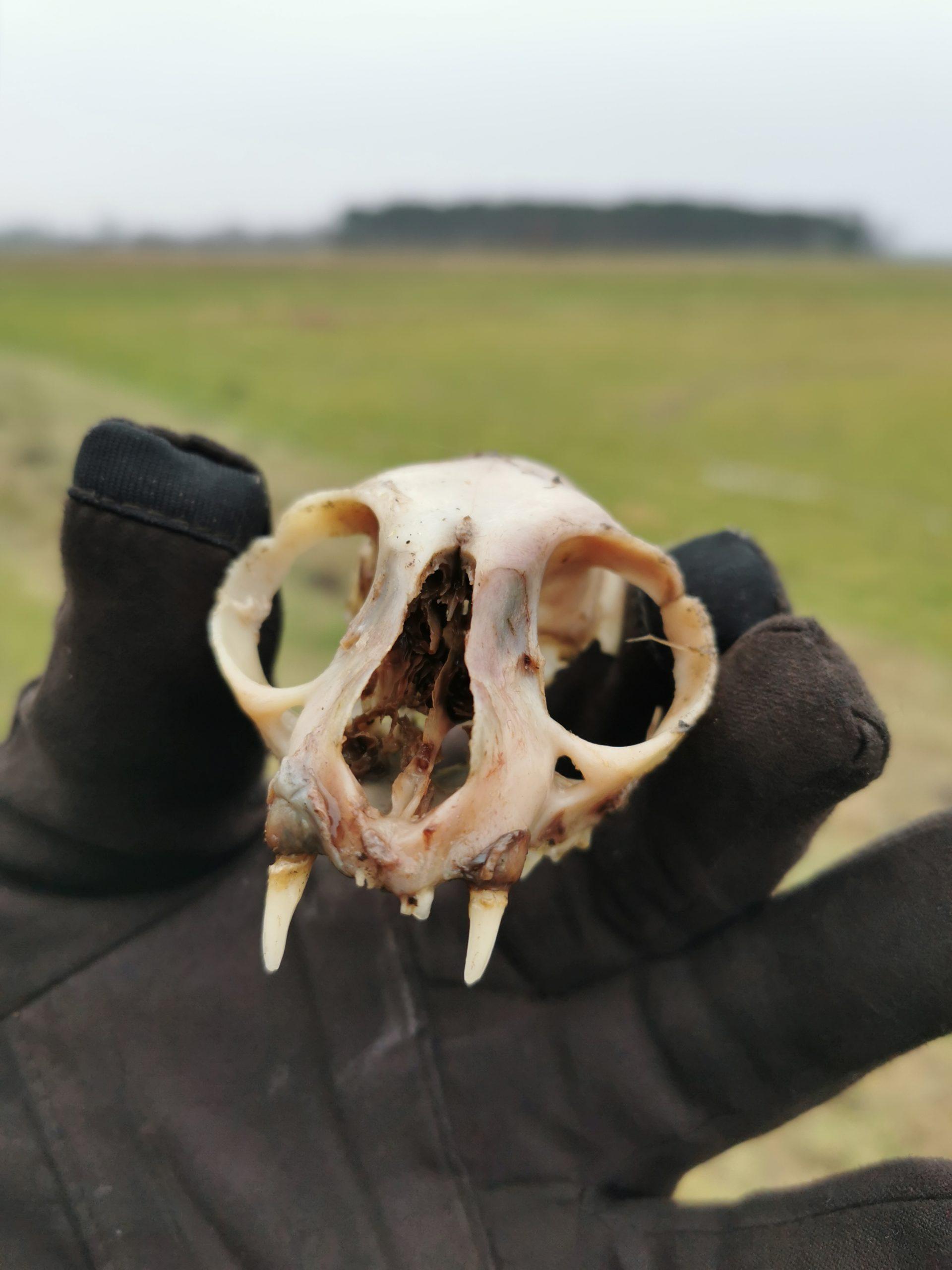 Diesen Kopf haben wir bei einer Wanderung gefunden. Wir haben gerätselt, was es wohl sein könnte. Ein kleines Raubtier oder Nager? Wer es weiß, kann uns gerne eine SMS schicken. Wir freuen uns ? Nachtrag vom 15.12.21 Sabri meint, es könnte eine Katze sein. Links unser Bild. Rechts das Bild eines Katzen Skelettes.