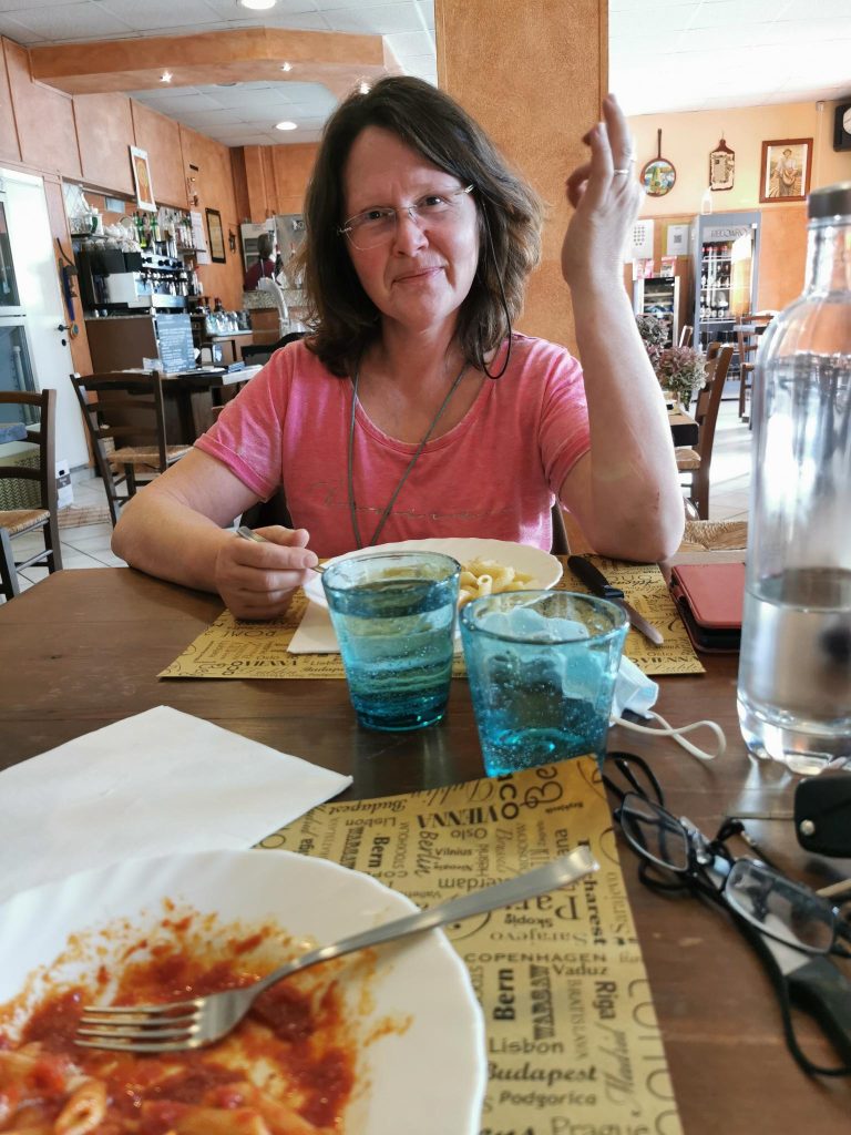 In Ranco, am Lago Maggiore, hat es uns sehr gut gefallen. Unser Bauch sagt jedoch: „Weiter geht es“. Mittelfristig möchten wir an der Küste entlangfahren. Daher machen wir uns heute morgen auf den Weg in Richtung Genua. Gegen Mittag finden wir in dem Ort Solero ein Restaurant, welches von Einheimischen gut besucht ist und mittags ein „piatti di lavoro“ (Gericht für die Arbeit) anbietet. (Hunde) Freundliche Besitzer und leckeres einfaches Essen.