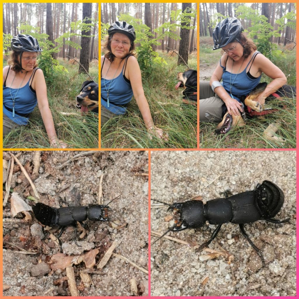 Unsere nächste 8 km Radtour führte uns durch den hiesigen Wald. Auf dem Weg dorthin kamen wir mit einem einheimischen Bauern ins Gespräch, welcher einen kleinen Hofladen betreibt. Dieser berichtete von Wölfen, welche sich seit einigen Jahren im Wusterwitzer Wald aufhalten. Er berichtete von einem Nachbarn, dessen Schwein von Wölfen gerissen wurde sowie einige Schafe. Oha! Er riet uns, Ava im Wald an der Leine zu halten. Bei dieser Erzählung aktivierte sich sofort mein Beschützerinstinkt und so ganz unbeschwert war die Radtour dann doch nicht. Unterwegs habe ich, google sei Dank, nochmal einiges über Wolf/Hund/Menschen Begegnungen gelesen und dies auf unsere Situation „heruntergebrochen“. Danach konnte ich wieder etwas besser entspannen.